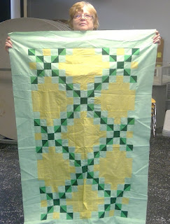 CC and her Chunky Churn Dash Quilt (another Bonnie Hunter class) - wow she out did us all!